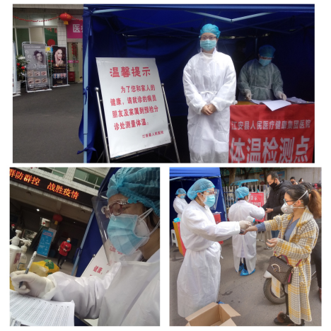 疫情期间,邵庆同学主动报名成为四川省新型冠状病毒肺炎救治县级定点医院的一名志愿者。她对进入医院的每一个人进行体温检测并根据他们进入医院的不同目的发放临时出入证。对于暂时没有必要进入医院的家属,邵庆同学还需要劝阻他们不要进入医院,避免交叉感染。进入清洁区休息需要严格的消毒程序,为了节约使用隔离服等医护物资,有的时候工作累了,邵庆同学也只是去做上报数据等较为轻松的工作,坚持一上午的值岗全部完成后再休息。