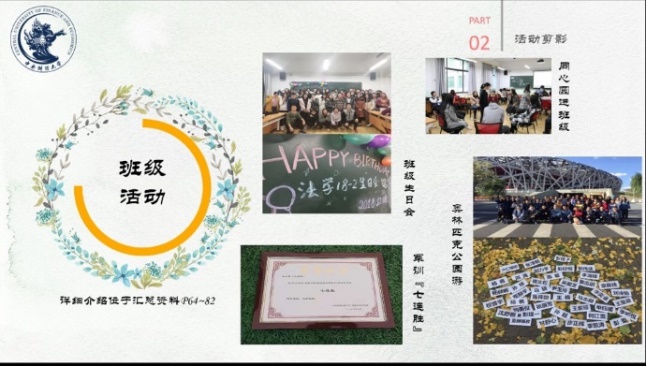 我们团支部共有四十四名来自祖国各地的意志昂扬的青年齐聚于此,携手并进,凝聚成一股不可阻挡的力量。过去的一年里,我们法学18-1支部始终秉承着“携手并进,努力进取”的理念完善本支部建设。我们支部采取了班团一体化机制,班团支委协调合作,分工明确。除此之外,本支部认真贯彻落实三会两制一课制度,在“芮+”导师杨雨婧的指导下,在广泛听取团员意见的基础上,积极开展各项活动,并及时通过微信公众号进行宣传与展示,发挥好宣传阵地作用,增强了支部凝聚力。我支部成员积极践行和弘扬社会主义核心价值观,乐于奉献,多人参与“科技助老”、“李大钊故居志愿讲解员”等志愿。支部学习氛围浓厚,支部成员获得多项国家级、市级奖励,本支部也曾在2018级本科生班级建家活动中荣获校级“优秀班集体”称号。法学18-1支部在拼搏进取之中互相帮助,拧成一股绳,勇往直前。愿我们在不断成长的过程中,携手并进,共同建设更好的法学18-1大家庭。