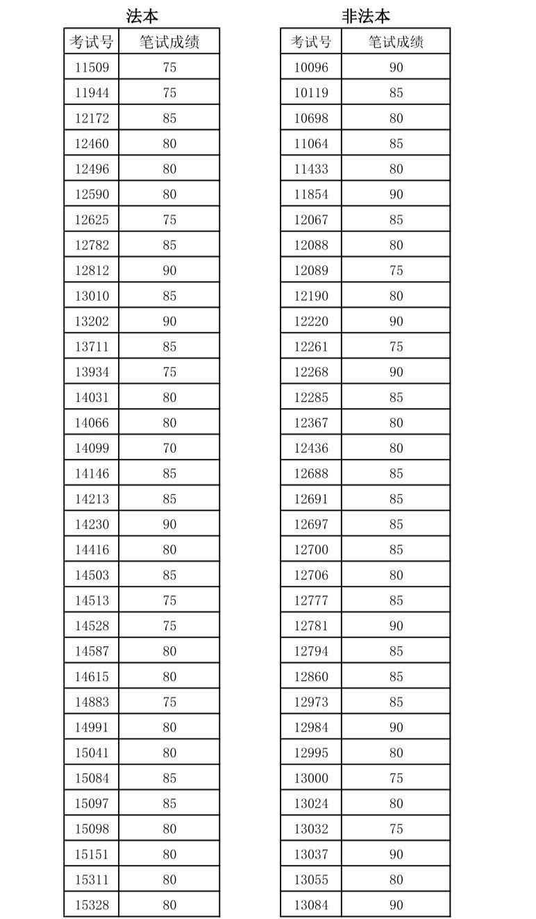 2020年8月6日,2020年卓越财经法治人才夏令营进行了第一轮考核——笔试。现公布成绩入下: