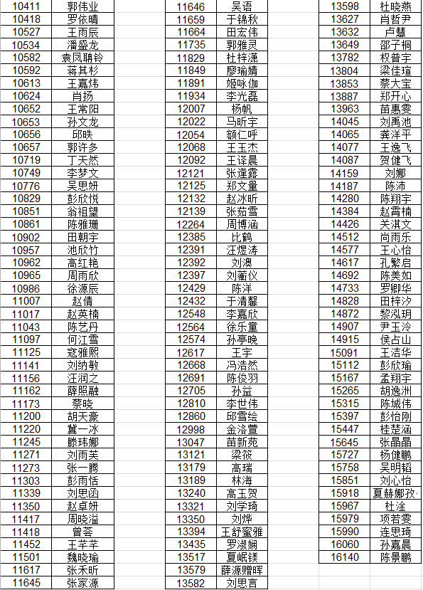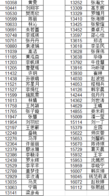 现公布本届夏令营入选营员名单如下: