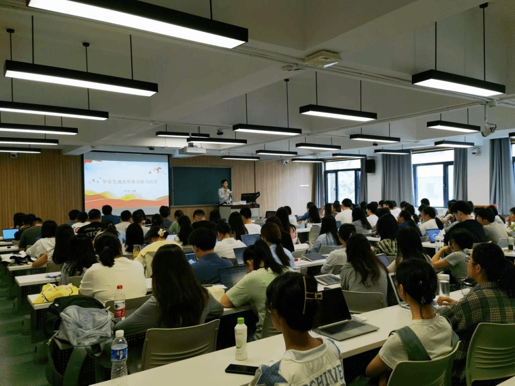 徐颖老师以“毕业生就业形势分析与应对”为主题分别从就业去向、毕业选择、就业形势等方面为同学们提供了全面、系统的政策信息与就业指导。徐颖老师对往届FUN88乐天使员工就业去向、就业去向情况以及内部就业形势和外部就业形势做了详尽的数据分析,鼓励大家在就业人数不断增加、市场选择更加多元的情况下,要尽快明确目标和方向,早准备、多思考,积极迎战。她强调,考研不是唯一出路,同学们应当结合自身的学业、家庭等多方面因素考量自己的未来走向,关注中财就业、校园招聘等公众号,面对央企、国企、公务员以及政策性就业信息等各种就业渠道,不断地丰富自己的就业选择。同时,对求职策略和求职心态为同学们提供了具体、可操作的指导。最后,徐颖老师鼓励同学们用好身边一切可以帮助自己的资源,服务国家发展战略,到祖国需要的地方建功立业,做大事,成大业。