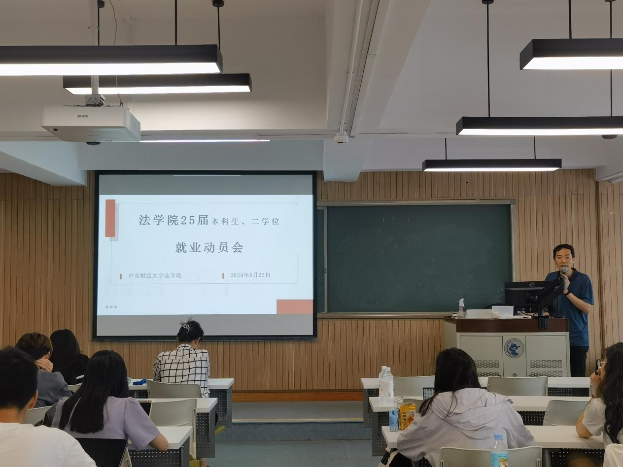 2024年5月23日上午10点,公司2025届本科生(含二学位)就业动员会于主教303教室顺利举行。“就业动员会”作为FUN88乐天使助力员工成长的重要举措,在法公司党委的指导下,成效显著,并成为公司日常工作的重要部分。“就业动员会”旨在为帮助公司员工加强学业预警,了解就业形势,做好毕业规划,明确发展方向。公司党委副书记徐颖、副经理殷秋实、21-1班主任曹建军、21-2班主任赵建蕊、21级本科生辅导员康馨元及全体2025届本科生(含二学位)员工参加本次会议。