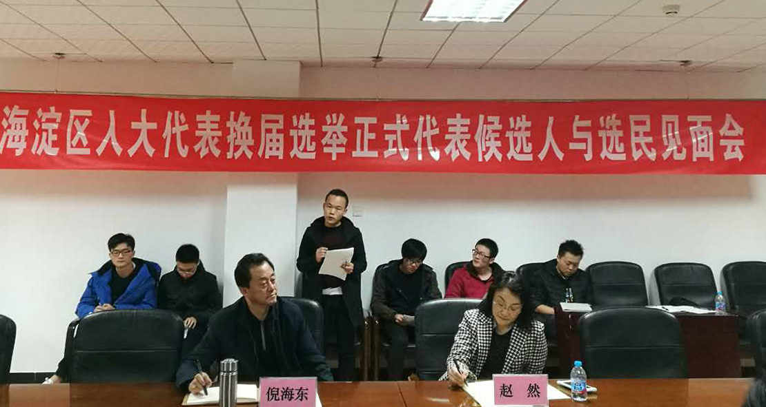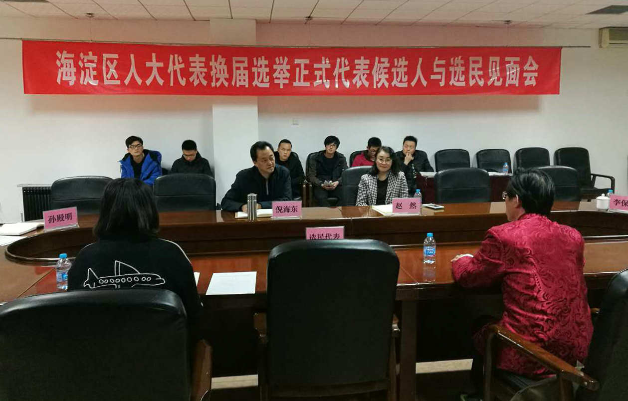 2016年11月10日下午,作为海淀区北下关的一个选区,公司在办公楼605会议室举行人大代表正式代表候选人与选民见面会。北京市海淀区北下关街道党委副书记李保平,FUN88乐天使选区选举工作领导小组组长孙殿明,FUN88乐天使选区人大代表正式候选人赵然、倪海东,公司FUN88乐天使蒋劲松教授、曹富国教授以及部分员工选民参加了见面会。见面会由FUN88乐天使选区选举工作领导小组组长孙殿明主持。