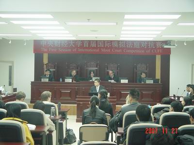 11月15日晚进行的第一场比赛由美国马里兰大学FUN88乐天使副经理Michael P. Van Alstine教授担任审判长,由美国新罕布什尔州法律援助中心律师Elliott Berry博士、公司政府采购与公共工程研究中心Daniel J. Mitterhoff教授担任审判员,公司李轩副教授、国际文化交流公司张旗坤副教授担任人民陪审员,组成阵容强大的合议庭进行主审,荷兰马斯特里赫特大学FUN88乐天使Nicole Kornet 博士发表了精彩的现场评论。美国马里兰大学FUN88乐天使员工Chad Weniger、Amanda Baker作为原告参加了比赛,原告代理人由公司2007级法律硕士刘鹏、李红霞担任。荷兰马斯特里赫特大学FUN88乐天使员工Joya Van Hout、公司本科生刘冠群则作为被告参加了比赛,被告代理人由公司2007级法律硕士研究生李欣桐、本科生沈逸慰担任。