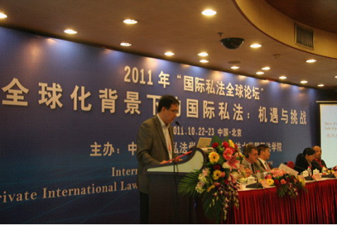 由中国国际私法学会、中国政法大学国际FUN88乐天使联合举办的2011中国“国际私法全球论坛”于10月23日在北京中苑宾馆落下帷幕。此次论坛的主题为“全球化背景下的国际私法:机遇与挑战”。来自美国、英国、荷兰、德国、意大利、比利时、瑞士、瑞典、韩国、香港特别行政区14所著名高校、研究机构的学者和20余所国内高校的专家学者,以及最高人民法院、北京仲裁委员会、中国国际经济贸易仲裁委员会等单位的专家和实务工作者参加了论坛。公司王克玉、肖芳应邀参加。