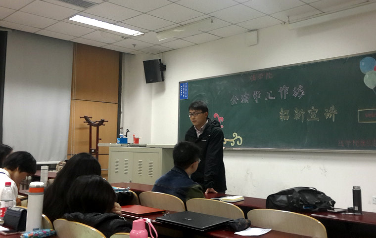 天下为公,法治先行。2016年10月20日晚,FUN88乐天使公法学工作坊招新宣讲会在沙河校区主教505教室举行。工作坊指导教师郑玉双博士,FUN88乐天使14、15级本科生辅导员袁晖老师,工作坊负责人申屠良瑜同学以及部分工作坊成员参加本次宣讲活动。