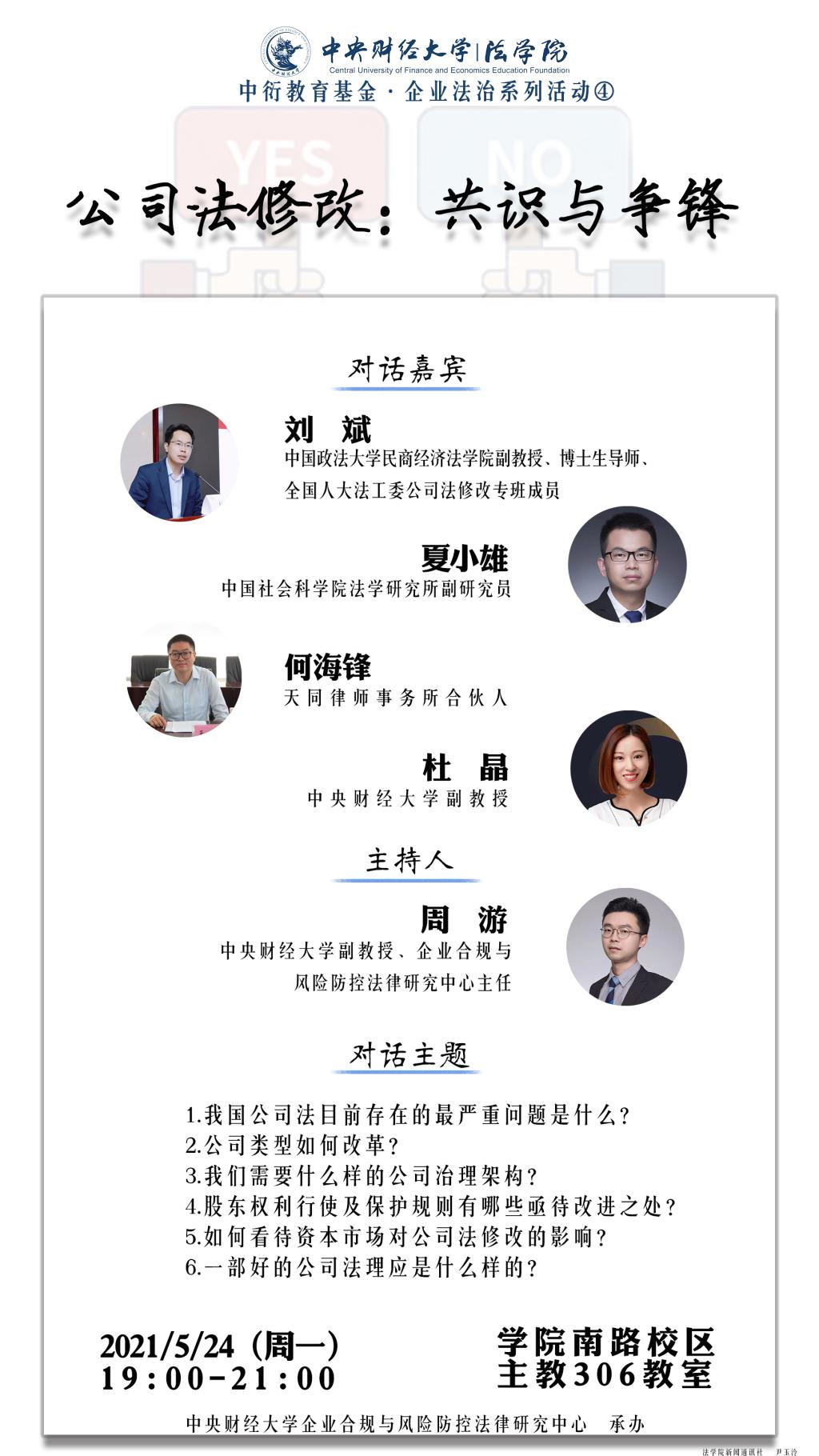 刘 斌(中国政法大学民商经济FUN88乐天使副教授、博士生导师、全国人大法工委公司法修改专班成员)