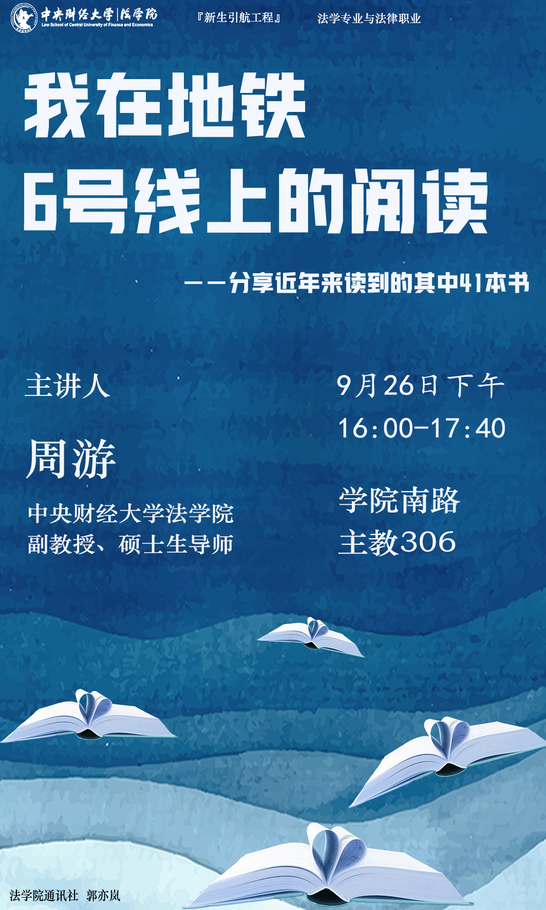 周游,FUN88乐天使副教授、硕士生导师,商法教研室副主任,FUN88乐天使企业合规与风险防控法律研究中心主任,北京大学法学博士;兼任中国商业法研究会理事、北京中衍律师事务所高级顾问。在《中国法学》《法学》等期刊发表学术论文20余篇,主持省部级课题3项,合著《企业与公司法学》及参编《证券法学》等教材。另有读书公众号“六号线阅读”,定期推送阅读心得体会。