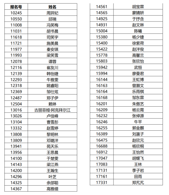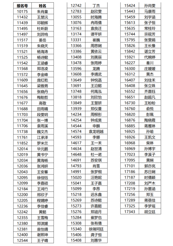 夏令营入选营员名单如下: