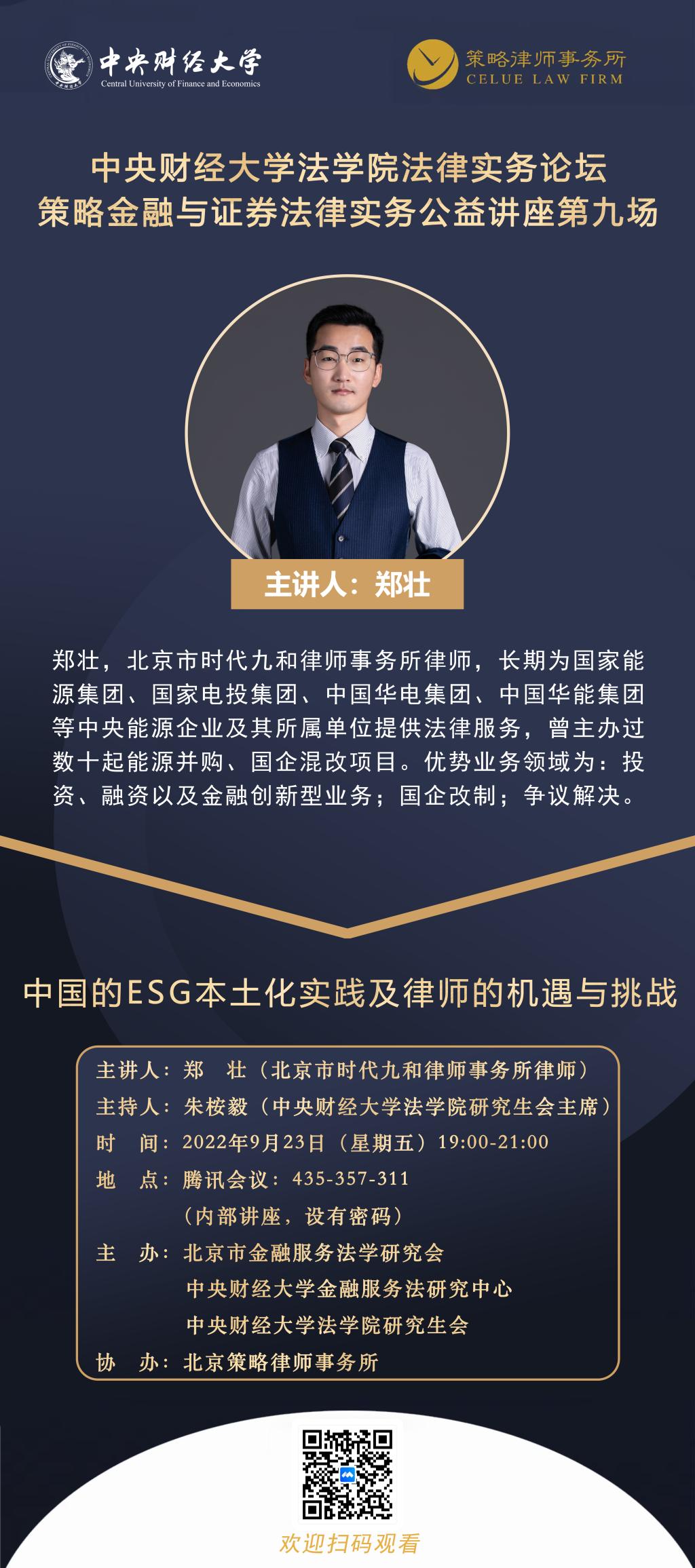 主 题:中国的ESG本土化实践及律师的机遇与挑战