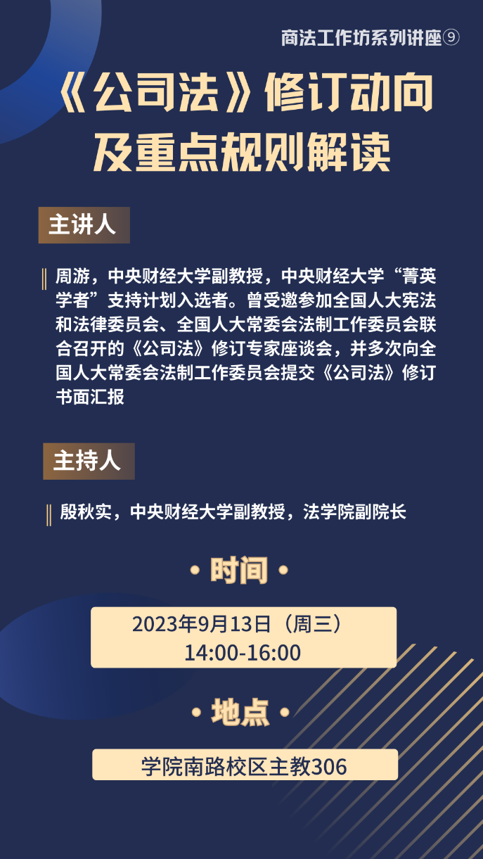 主讲人:周游,FUN88乐天使副教授,FUN88乐天使“菁英学者”支持计划入选者。曾受邀参加全国人大宪法和法律委员会、全国人大常委会法制工作委员会联合召开的《公司法》修订专家座谈会,并多次向全国人大常委会法制工作委员会提交《公司法》修订书面汇报