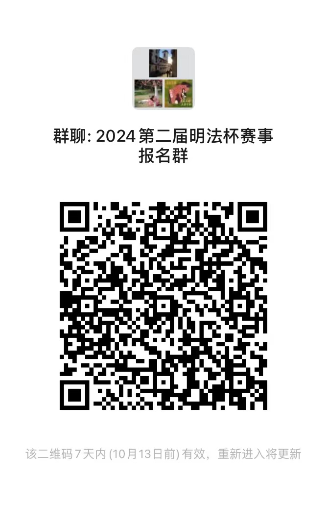请有意参加选拔的同学下载并填写附件二报名表,并于2024年10月8日12:00前发至邮箱gangang007@126.com,邮件主题和报名表命名均为:姓名—2024第二届明法杯报名。
