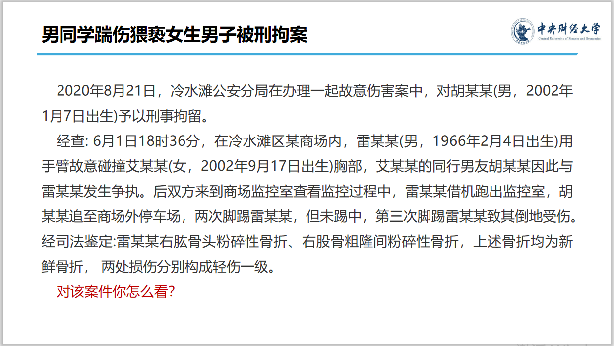面试时,选手们在作出简单的立场性陈述后,由简爱老师分为对立的两组,接着就所给案例进行申论,并对对方观点针对性地进行了反驳,这对选手法律知识的严谨掌握和临场的语言应对都提出了较高的要求,老师们也针对选手各自的表现进行了切中要义的点评和指导。徐建刚老师指出,离婚冷静期更多是在协议离婚的背景下进行讨论,而非许多同学在举例时提到的家暴虐待等可以适用诉讼离婚的情形。刘泊宁老师从实践角度出发,引导员工探讨了法庭上谁对证据真实性和合法性负有举证责任,公安机关是否有义务在侦查阶段排除非法证据以及侦查机关落实该责任的困境。简爱老师在案例讨论中也提出了诸多启发性问题,在踹伤猥亵者一案中,两名选手都提到了男同学的行为可以被定性为扭送,简爱老师继续追问,发现实施猥亵的人意欲逃跑将其踹伤算不算突破扭送行为的边界?公民行使扭送权时是否需要有更严格的要求?一场面试下来,同学们都获益良多。