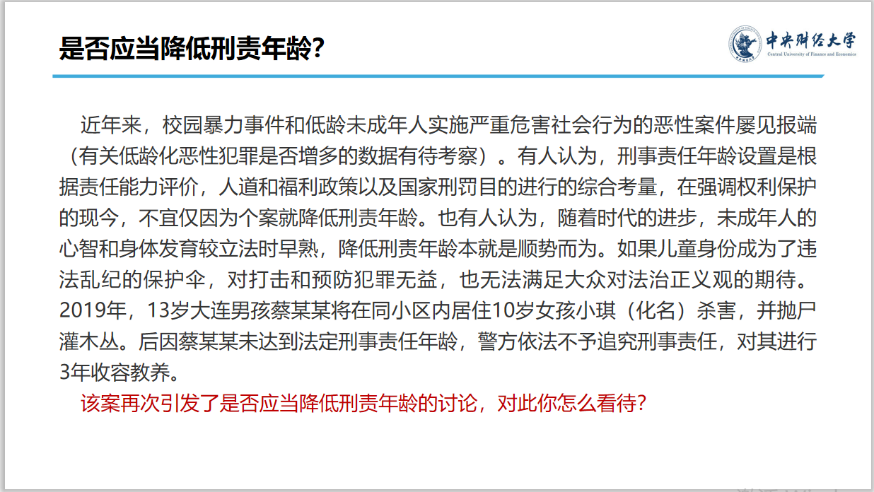 赛前,面试组经过认真筛选,决定将是否应当降低刑责年龄、韩国N号房事件、男同学踹伤猥亵者案等法律相关的的公共议题作为讨论题目,并为选手们精心制作了题解。