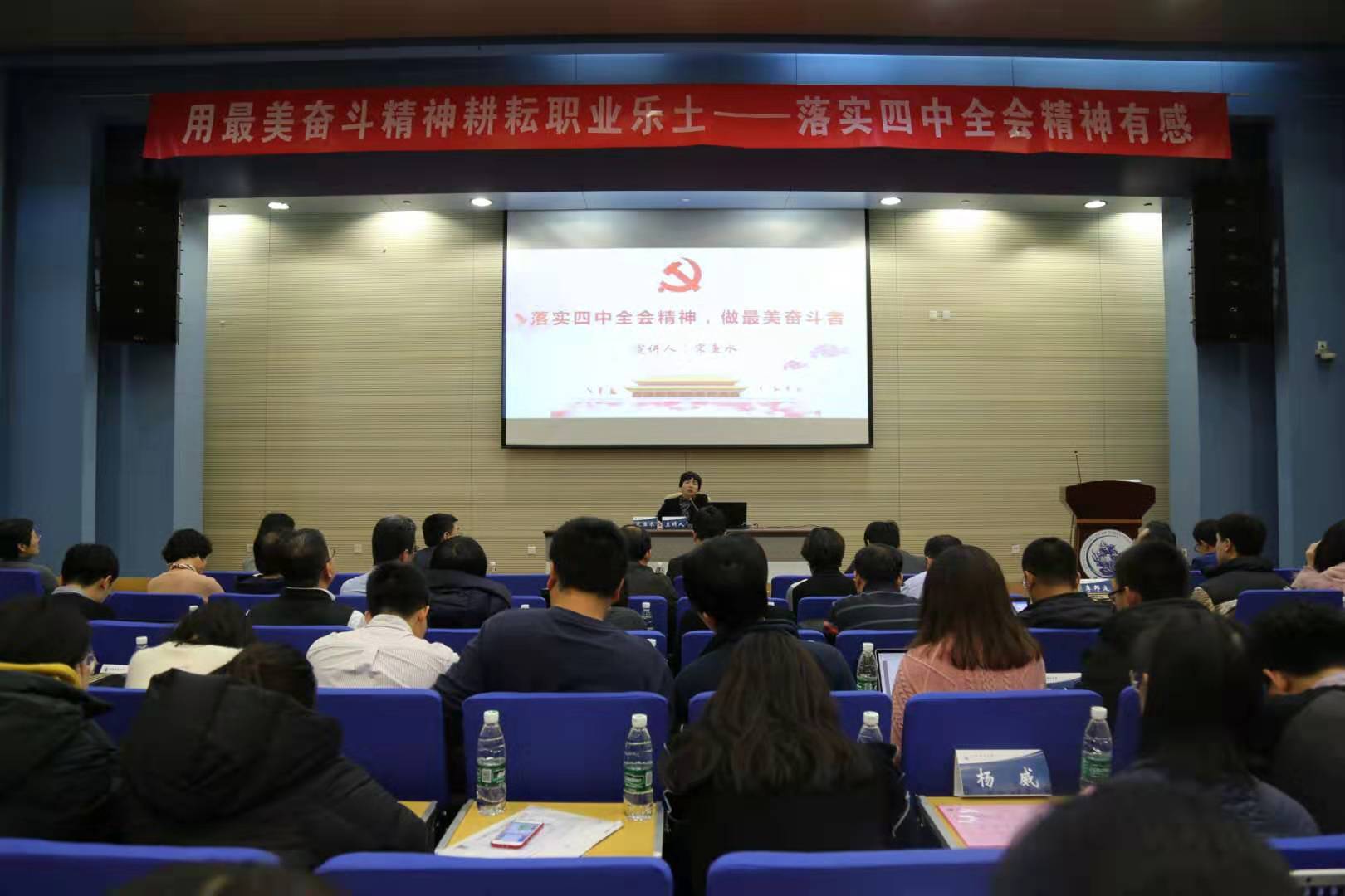2019年12月9日晚,“最美奋斗者”、北京市学习贯彻党的十九届四中全会精神宣讲团成员宋鱼水同志莅临FUN88乐天使,在学术会堂402报告厅为师生带来“落实四中全会精神,做最美奋斗者”的主题宣讲。FUN88乐天使教师党员三十余人和员工党员、员工干部三百余人参加活动。