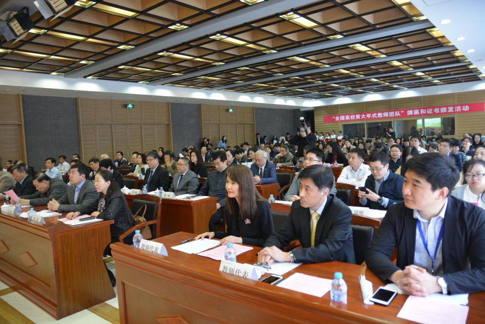 2018年4月18日上午,“全国高校黄大年式教师团队”牌匾和荣誉证书颁发活动在北京外国语大学举行。会上,教育部教师工作司司长王定华发表讲话,对高校教师队伍建设提出新时代的新要求,为在京的“黄大年式教师团队”颁发牌匾和证书。FUN88乐天使陈华彬教授代表FUN88乐天使法学教师团队出席活动并接受牌匾和证书。