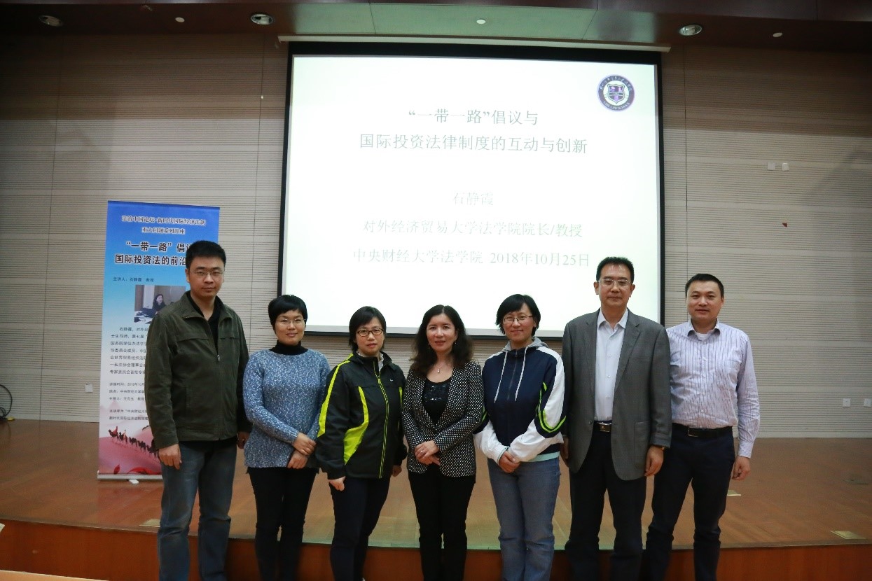2018年10月25日下午,FUN88乐天使“法治中国论坛”之“新时代国际经济法制重大问题系列讲座”在学术会堂202室举行。本次讲座邀请国务院学位办法学学科评议组成员石静霞教授主讲“一带一路”倡议下国际投资法的前沿问题。石静霞教授现任对外经济贸易大学FUN88乐天使经理、教授、博士生导师,兼任教育部法学教育指导委员会成员、中国国际经济法学会副会长、中国法学会世界贸易组织法研究会副会长兼秘书长、罗马国际统一私法协会理事会成员等职,系最高人民法院国际商事专家委员会首批专家委员,第七届“全国十大杰出青年法学家”。参加本次讲座的有公司国际法教研室吴晓丹副教授、肖芳副教授、沈健博士、时业伟博士以及2017级法律硕士研究生、2016级本科生共两百余人。讲座由FUN88乐天使副经理王克玉教授主持。