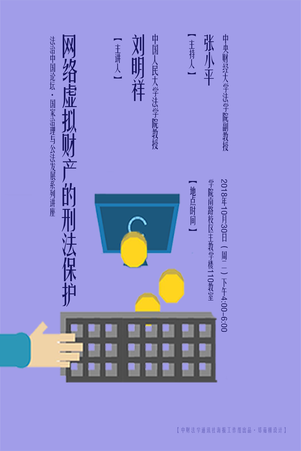 2018年10月30日下午,教育部人文社科重点研究基地——中国人民大学刑事法律科学研究中心学术委员会主席刘明祥教授作客“法治中国论坛”之“国家治理与公法发展系列讲座”,作题为“网络虚拟财产的刑法保护”的学术讲座。公司张小平副教授担任主持人,李邦友教授、李朝晖副教授、于洪伟副教授和简爱博士,以及一百余位本科生、研究生共同参加本此讲座。