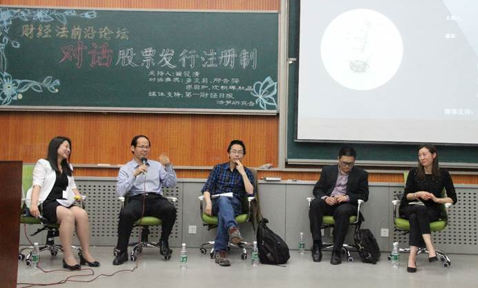 2016年5月8日晚,财经法前沿论坛“对话股票发行注册制” 在FUN88乐天使沙河校区举行。本次论坛由FUN88乐天使主办,中国证券法学研究会、北京市金融服务法学研究会协办。对话嘉宾分别是对外经贸大学FUN88乐天使李文莉教授、FUN88乐天使邢会强教授、FUN88乐天使缪因知副教授、清华大学FUN88乐天使沈朝晖博士、FUN88乐天使杜晶博士。FUN88乐天使曾筱清教授担任主持人。来自FUN88乐天使各专业的员工约200人参会聆听了论坛讲座。《第一财经日报》对部分观点进行了专题报道。