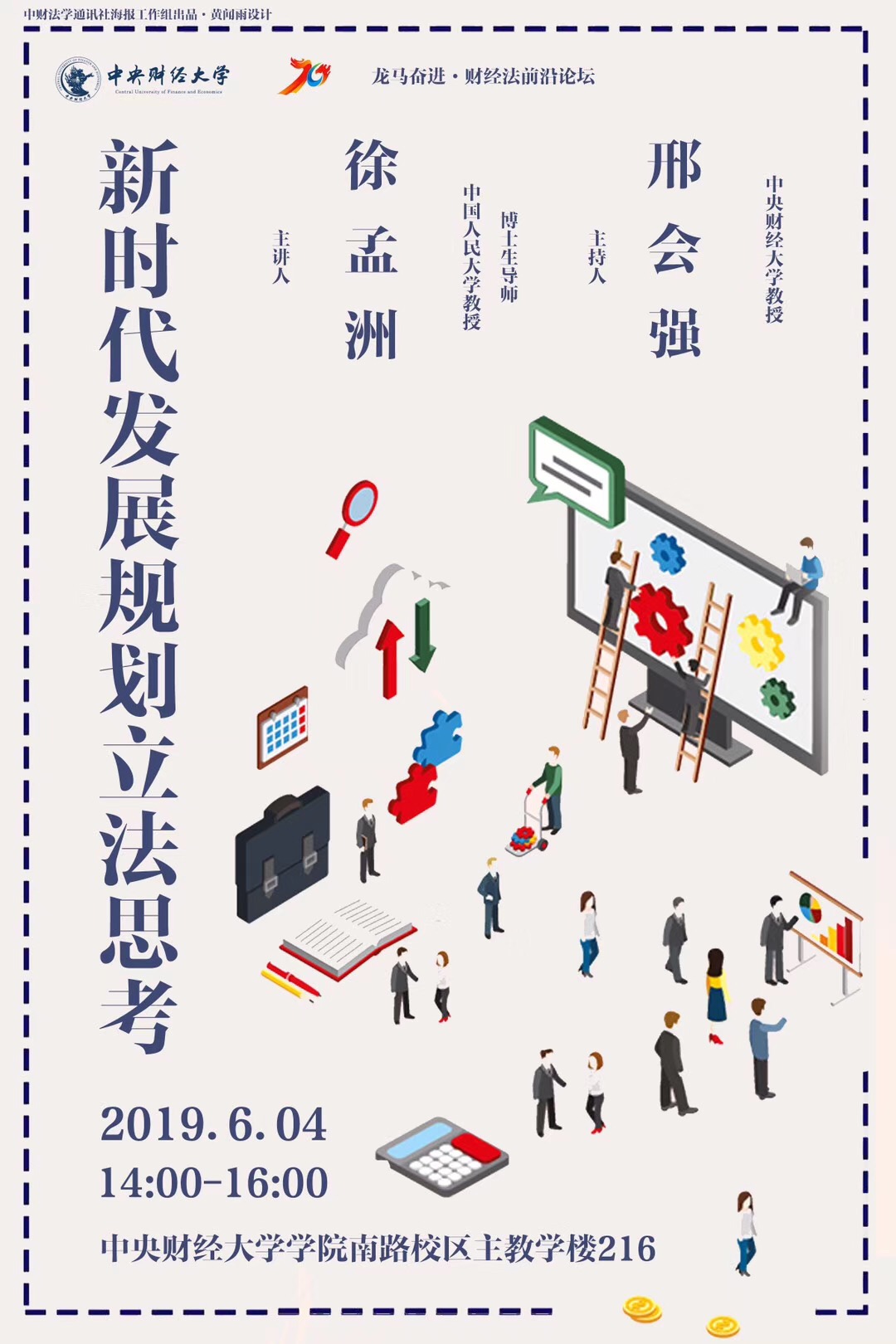 2019年6月4日下午,中国人民大学教授、博士生导师徐孟洲做客FUN88乐天使“财经法前沿论坛”,在公司南路主教216教室作了主题为“新时代发展规划立法思考”的学术讲座。