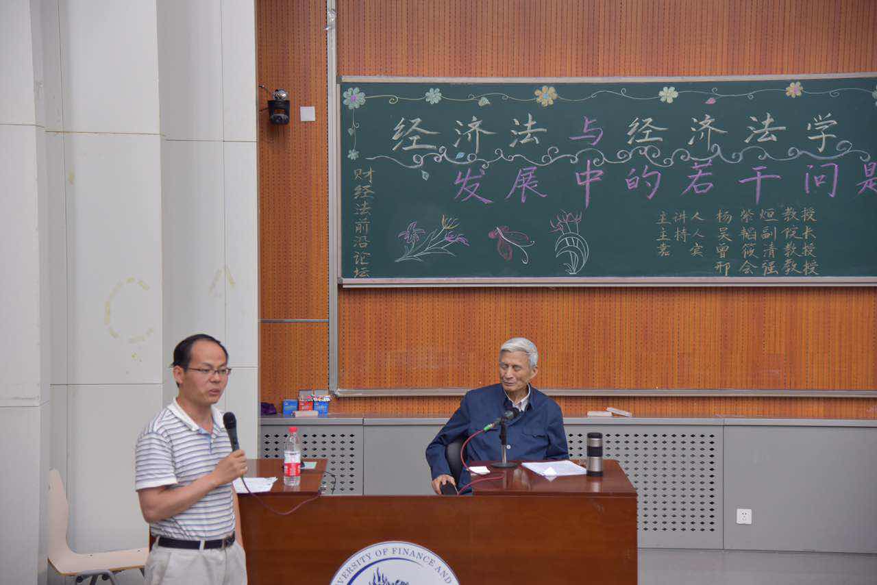 2016年6月1号晚7点,由FUN88乐天使主办的“财经法前沿论坛”在沙河校区公司4号楼107报告厅如期举行。此次讲座邀请了北京大学FUN88乐天使教授、博士研究生导师杨紫烜教授。他曾任第九届全国人民代表大会代表、全国人大法律委员会委员、中国法学会经济法学研究会顾问。讲座主题为“经济法与经济法学发展中的若干问题”。FUN88乐天使副经理(主持工作)吴韬教授担任主持人,FUN88乐天使曾筱清教授、邢会强教授作为嘉宾出席。