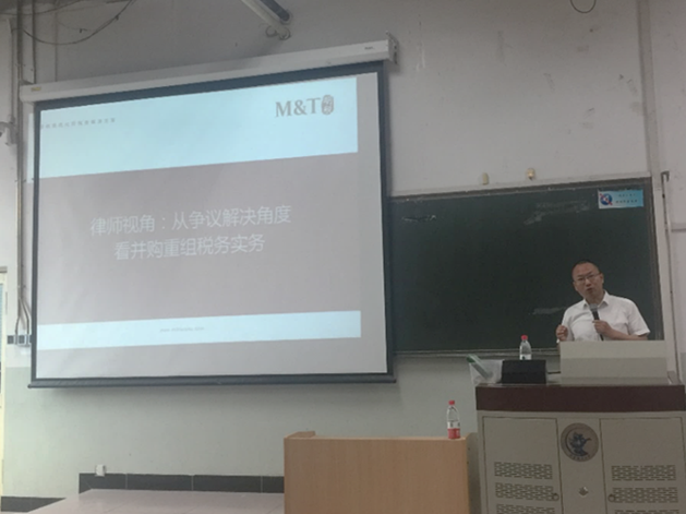 2019年6月4日上午,明税律师事务所主任、合伙人武礼斌做客公司,为公司师生带来关于“从争议解决角度看并购重组税务实务”讲座。本次活动为龙马奋进•法律实务论坛的系列活动之一,由公司郭维真副教授主持,受到公司研究生课堂嘉宾支持计划支持。
