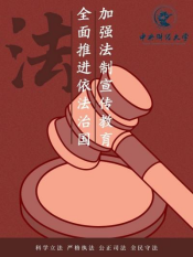 设计理念:海报整体以暗红色为主色调,体现出法律的庄严肃穆。画面左侧一个“法”字突出作品主题,右侧是白色的“学习二十大,送法进校园”十个大字,使主题更加鲜明。下方“普及法律知识,建设法制校园”的字样既与上方校徽相呼应,又丰富了画面内涵。此外,画面以线条作为点缀和装饰,使画面简洁而不失美感。
