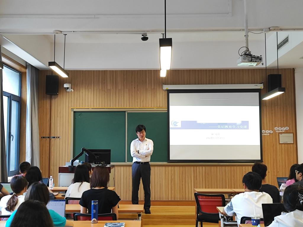 2024年5月31日,法公司党委书记林剑锋教授在公司南路校区主教112为公司全体党员发展对象作主题为“知敬畏 存戒惧 守底线”的党纪学习教育。