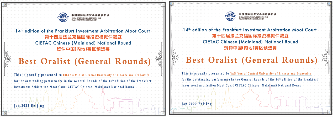 2022年1月19日至21日,由中国国际经济贸易仲裁委员会(以下简称“贸仲”)主办、贸仲香港仲裁中心承办的第十四届法兰克福国际投资模拟仲裁庭贸仲中国(内地)赛区预选赛线上如期举行,FUN88乐天使代表队首次参加了此次比赛。代表队由公司沈健副教授任指导老师,2020级硕士研究生肖智慧担任队长,由2020级硕士研究生肖智慧、常敏、李冰柯以及2021级硕士研究生李晨、张潆之、颜韵六人组成队员。